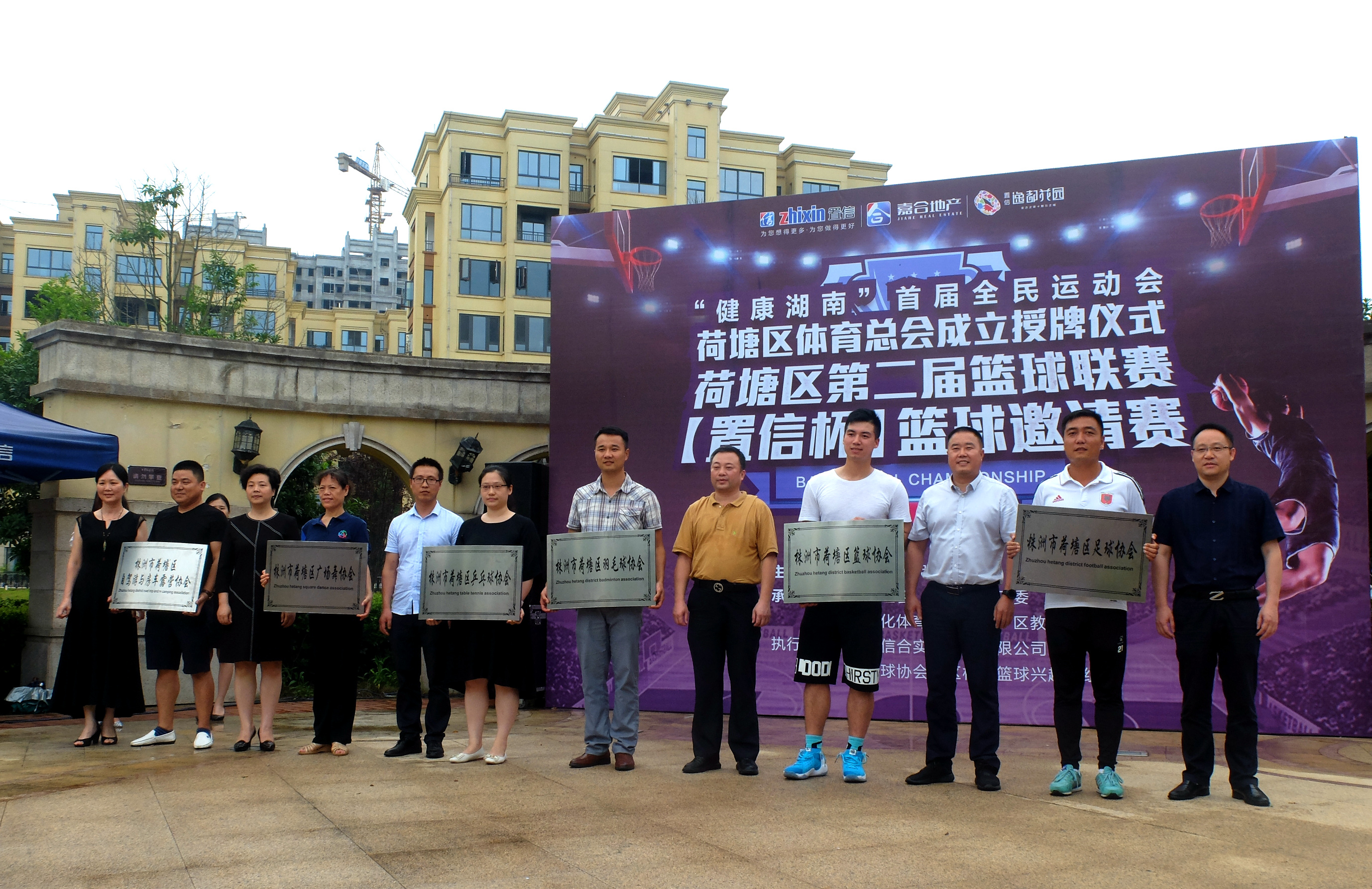 6月20日下午,荷塘区体育总会成立授牌仪式及首届“健康湖南”全民运动会之荷塘区第二届篮球联赛暨“置信杯”篮球邀请赛开幕式在金山新城运动公园举行。市文体广新局党组成员、副局长王建志,市体育总会秘书长阎军,区领导邬凌云、何恒仁、文韶松、成良池、喻秋良、程轶辉、李小华、张岚等出席活动。