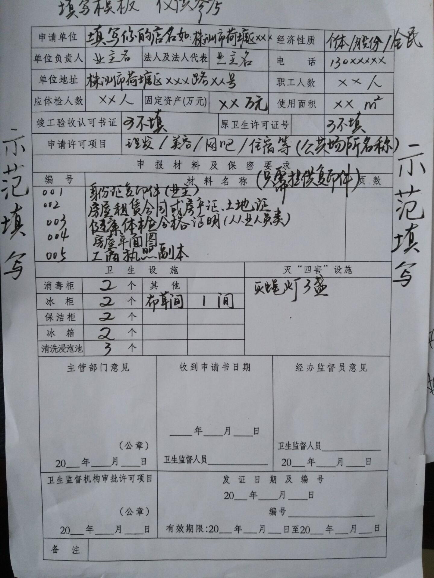 1.《卫生许可证变更申请书》,收原件;